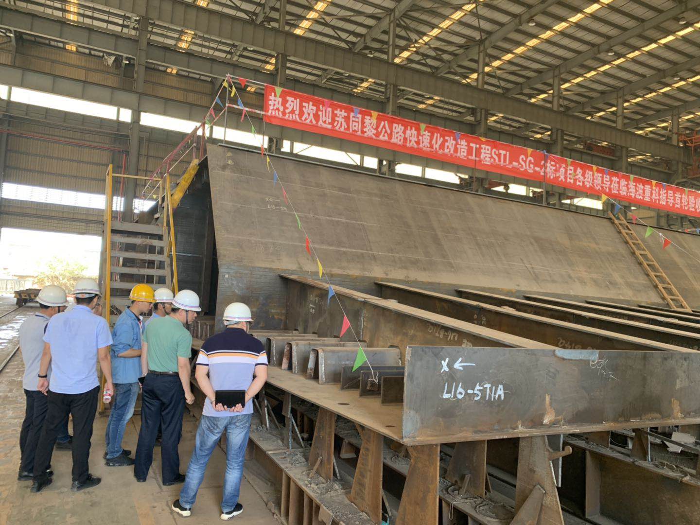 2019年7月10日,江蘇緯信工程咨詢有限公司組織在海波重科召開蘇同黎公路快速化改造工程STL-SG-02標(L16聯5-9節段)首輪制造總結會,與會人員查看了現場首輪鋼箱梁構件,聽取了制造單位的匯報,審閱了相關資料,討論形成最終意見:《蘇同黎公路快速化改造工程STL-SG-02標工程鋼箱梁首輪制作施工》內容齊全,資料詳實;首輪鋼箱梁(L16聯5-9節段)整體尺寸、線形符合設計及規范要求;構件檢驗資料齊全有效,結構、外觀良好,焊縫無損檢測合格。如圖: