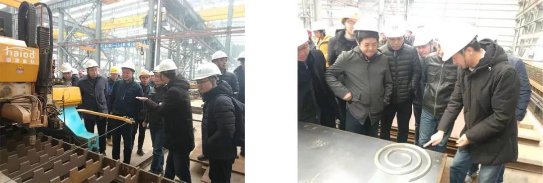 湖北省交通廳建設(shè)處副處長周炎新、湖北省交通廳公路局處長呂厚全、副處長謝華鸞、湖北省院副總監(jiān)張貴士、長江路橋總經(jīng)理王懷才、書記馮太坤、總工楊建波、江北東項目業(yè)主董事長左光恒、副經(jīng)理黃遵義、中交二公院二分院書記孫貴清、工研院副院長夏飛、橋梁院副院長、總工朱玉、四航局一公司副總工程師劉永峰、黃國忠、工研究結(jié)構(gòu)所總工李平杰、北京工業(yè)大學(xué)、同濟(jì)大學(xué)各位老師及領(lǐng)導(dǎo)蒞臨海波重科漢南分公司鋼結(jié)構(gòu)加工廠做現(xiàn)場考察工作。