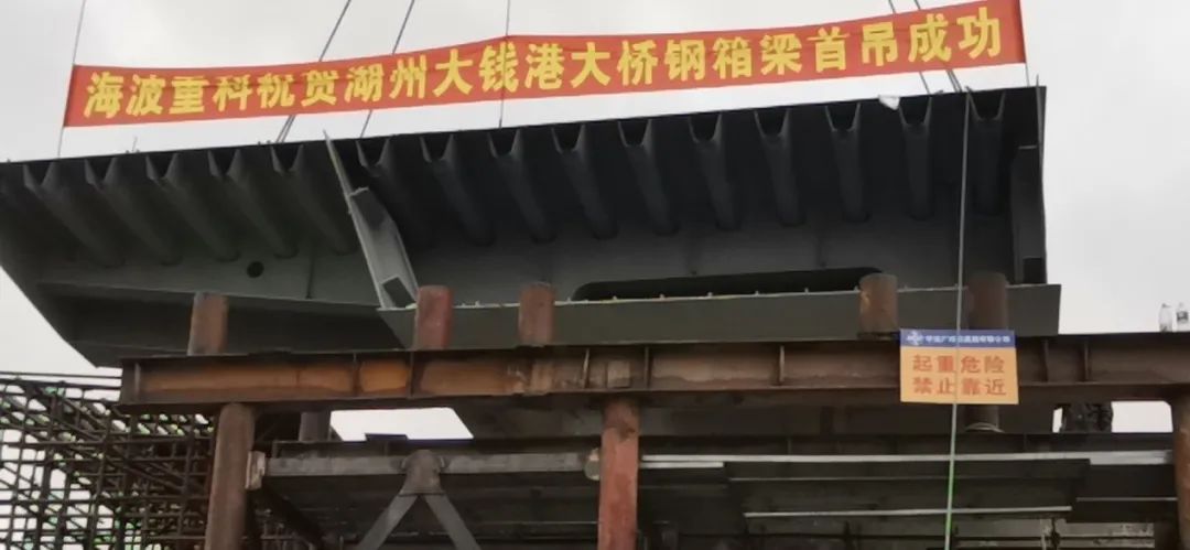 在疫情未散、酷暑將至、工期緊張等重重困難之下,海波重科大錢港大橋項目部不負眾望,完成了首個鋼箱梁節段吊裝定位工作。本次首吊的順利進展,是每一位海波人,高標準、嚴要求、勵精圖治、不忘初心的共同成果,接下來,海波重科也將一如既往、乘勢而上、順勢而為,為橋梁建設事業作出更大的貢獻。