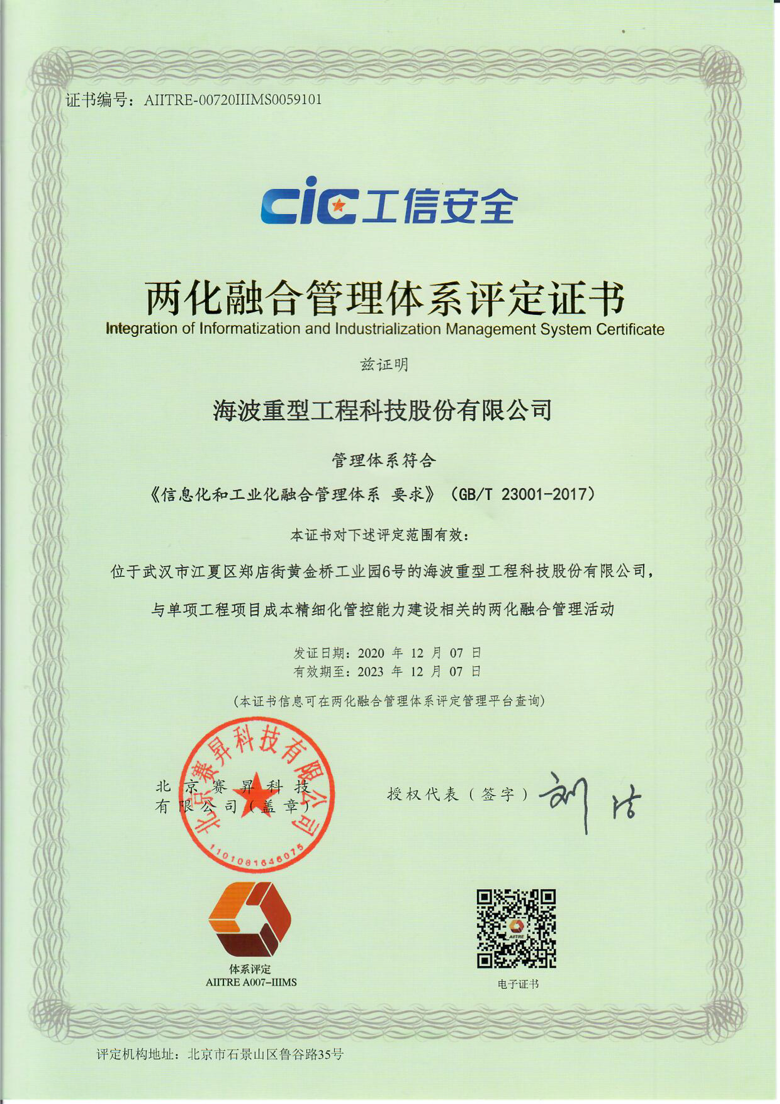 最終,經(jīng)國家工信部認(rèn)可,我公司兩化融合工作符合國家兩化融合管理體系滿足標(biāo)準(zhǔn)要求,同意頒發(fā)“兩化融合管理體系評定證書”,標(biāo)志著海波重科兩化融合管理體系貫標(biāo)工作圓滿完成。